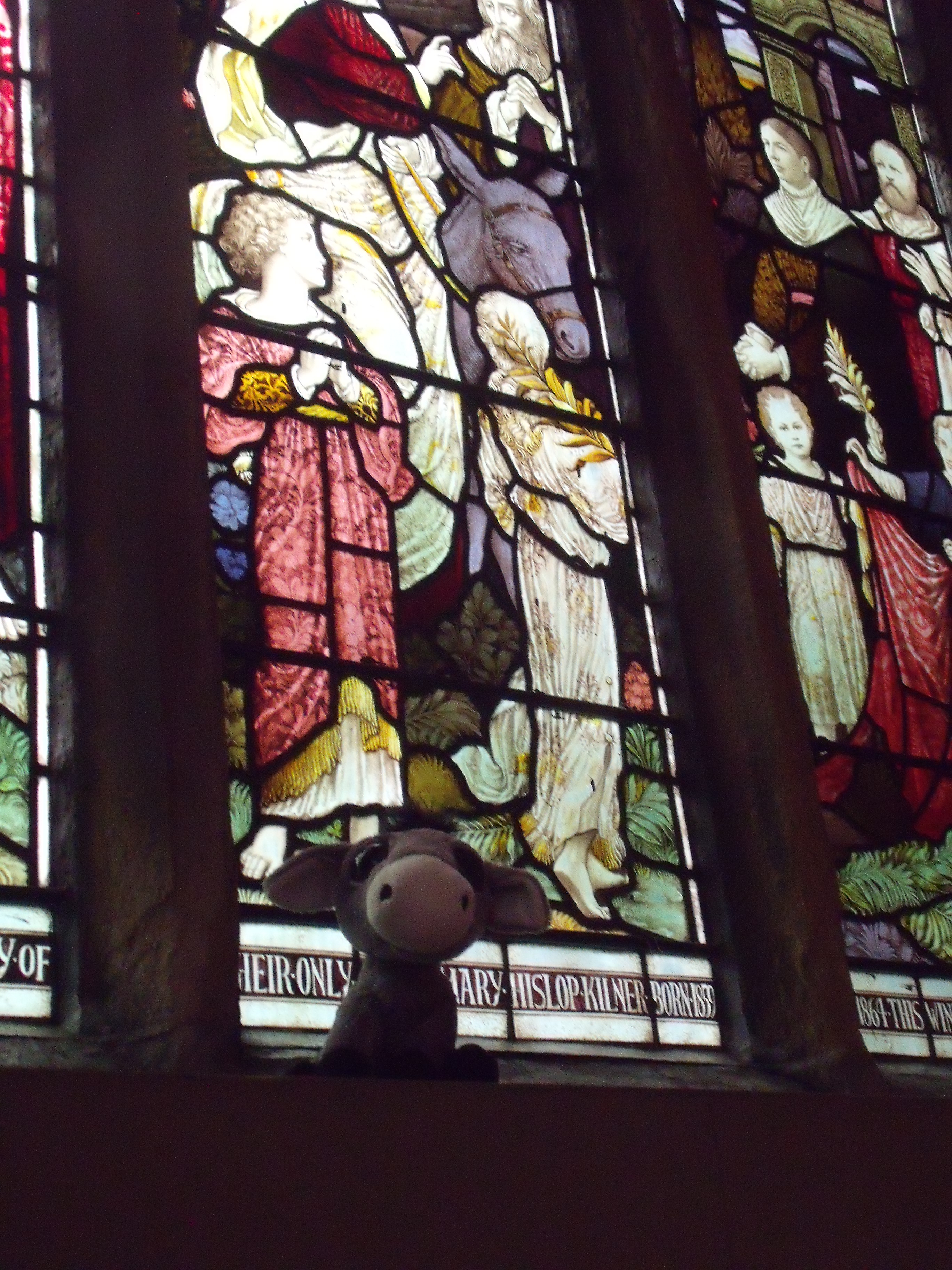 There’s a donkey at the church already, in one of the windows, here we are together.
