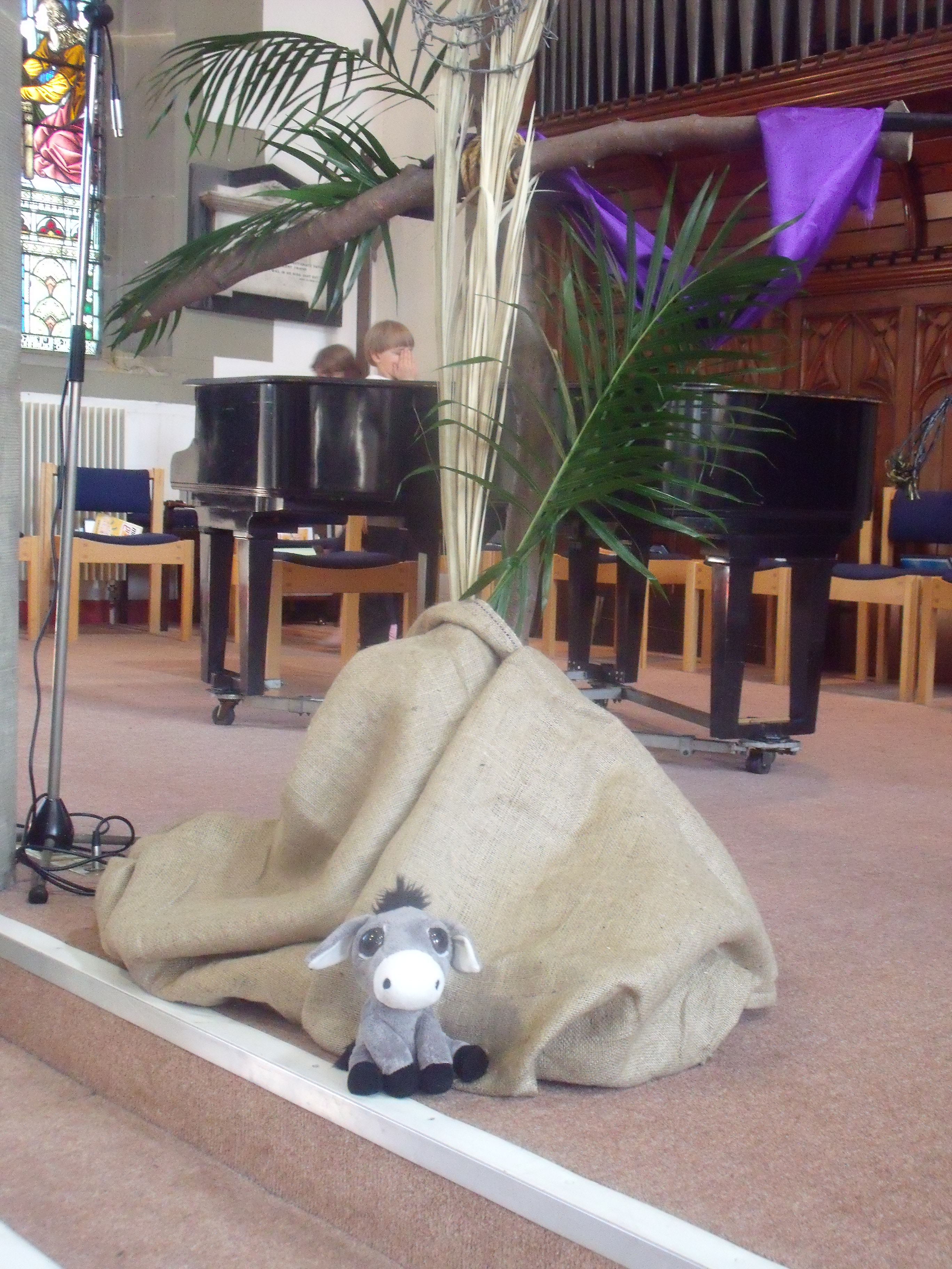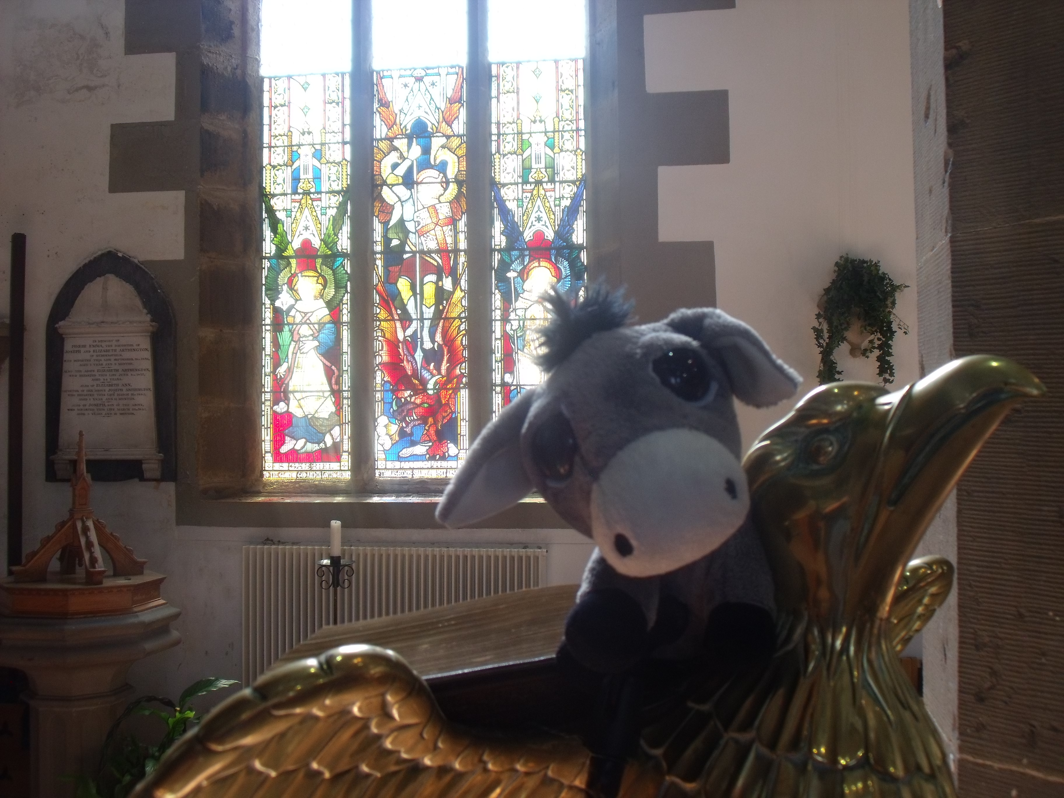 Off to church again. As a donkey in church I became a visual aid, the Vicar’s daughter adopted me for the duration of the service so I got to go out and play rather than sit through a sermon. Phew, got away with it.